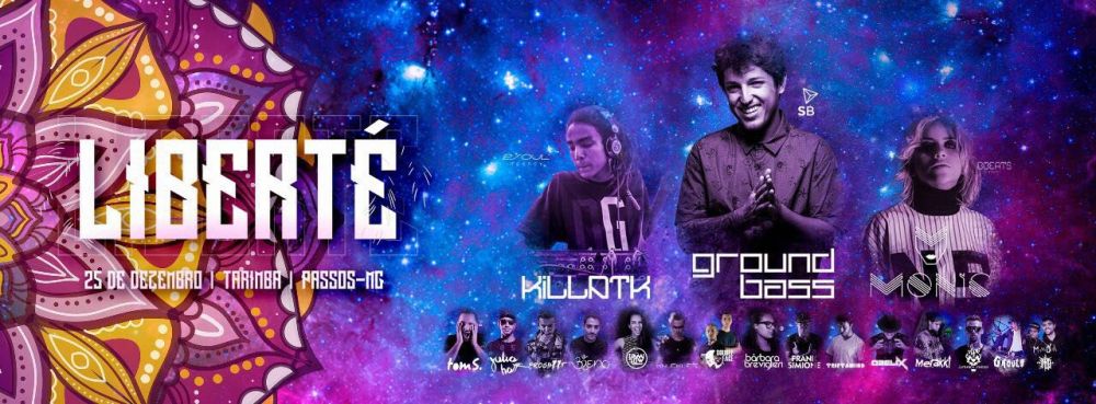 A Liberté contou 18 djs no line up que estava fixado bem na entrada do evento pra todos acompanharem as 20 horas de festa para todos os gostos e vertentes. Compartilhamos momentos vivenciados na festa de acordo com o contexto das datas comemorativas do final de 2017. Tudo isso devido à editoria Agenda IMM que em 1 ano apoiou, divulgou e realizou coberturas fotográficas em 8 festas raves aqui na redondeza. E para viver esta LI-BER-DA-DE de escolha com responsabilidade fomos para Liberté de coração aberto prontos para esta conexão com a Terra partindo de um único princípio: “Todos somos um!” O site Itaú de Minas e Manos apresenta informações de 3 atrações – Groundbass, Monic e Julio Hoff.