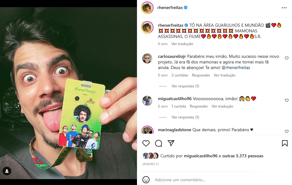 O filme “Mamonas Assassinas – O Impossível Não Existe“, baseado na memorável banda Mamonas Assassinas, está sendo filmado em Guarulhos (SP) desde o final de janeiro. O longa promete homenagear a trajetória de Dinho, Sérgio, Samuel, Júlio e Bento, interrompida por um acidente aéreo em 2 de março de 1996. O projeto tem direção de Edson Spinello e roteiro de Carlos Lombardi em parceria com Carlos Amorim. No filme, a banda será interpretada pelos atores: Ruy Brissac (Dinho), Adriano Tunes (Samuel), Robson Lima (Júlio) e Beto Hinoto (Bento). E o @rhenerfreitas, que morou na terra do cimento, interpretará o Sérgio, o baterista. Ele que já fez séries na Disney, no teatro interpretou Ney Matogrosso e está agora no @oficialmamonasassassinas. <<<<< Sigam-nos os bons! 👍