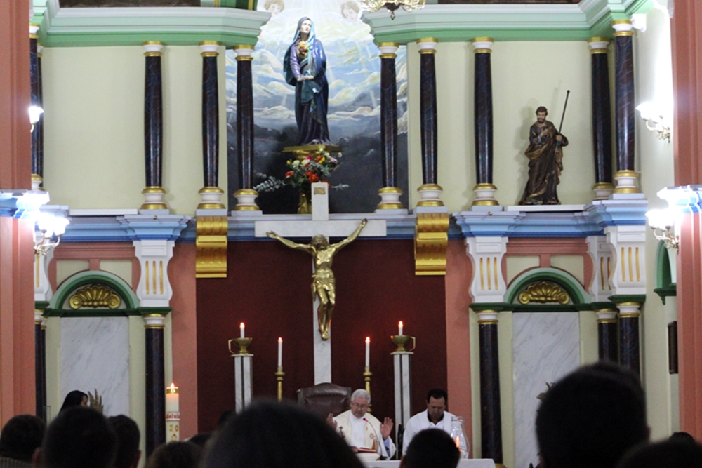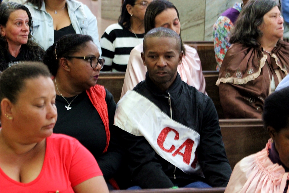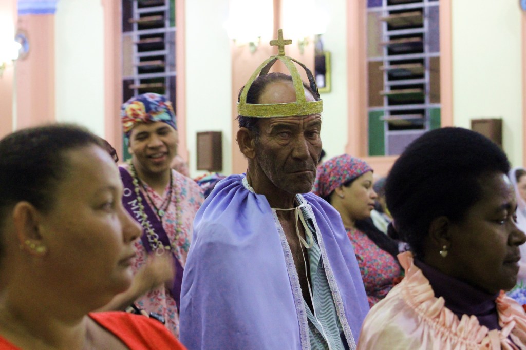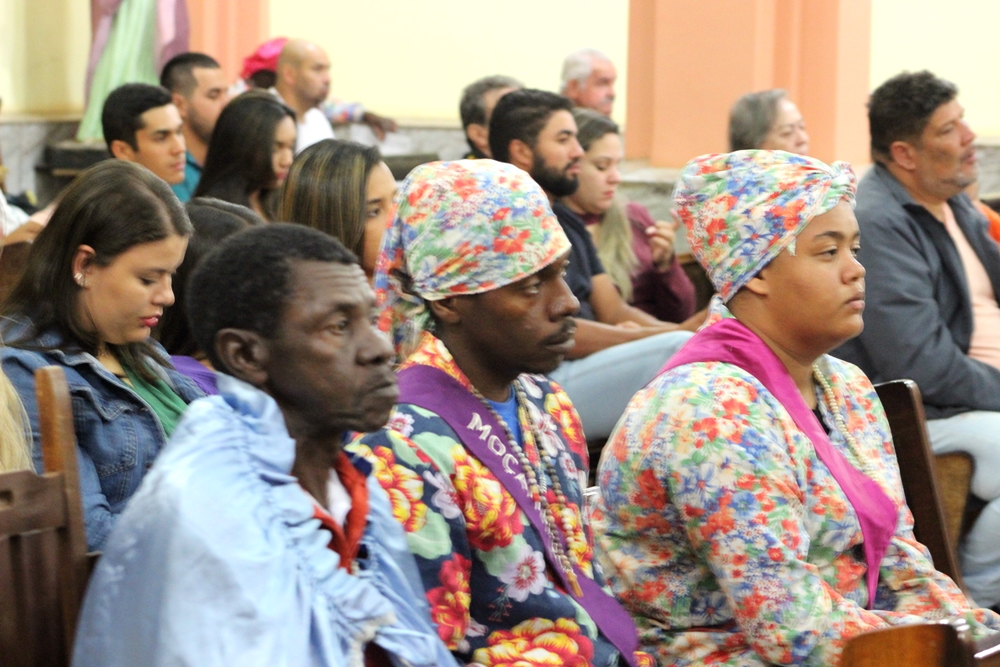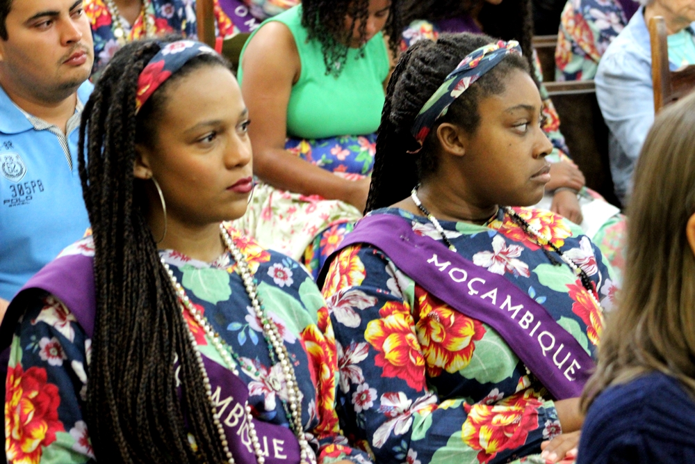 Na sequência assistimos a missa na matriz com a presença do Terno de Moçambique que, ao final, partiu em cortejo escoltando os componentes do Reinado e levando as imagens de Nossa Senhora do Rosário e São Benedito para a capela de Nossa Senhora do Rosário, que foi construída em 1852. La foram levantadas as bandeiras para a realização da Festa a partir do dia 18 de junho.