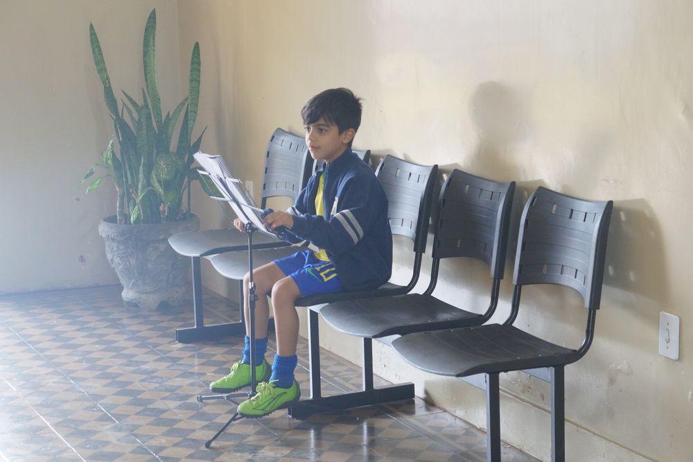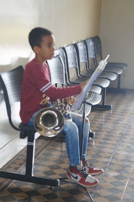 Ao ser questionado sobre método ele conta: “Temos um repertório que conseguimos unir Filarmônica, Coral e a Viola reunimos os três grupos voltado para a música sertaneja raiz. Com a Filarmônica quando os alunos entram eles passam por um processo de solfejo, que usamos um método muito bom que é o Alexis Garaudê e a principio eles vão utilizando somente este solfejo que é a parte teórica. Quando eles chegam em determinada lição eles estarão aptos a tocar um instrumento. Tudo o que tocamos é por partitura, portanto fazemos de uma forma diferente. Não oferecemos o instrumento quando eles entram porque eles não vão conseguir acompanhar. Passamos pelo método de solfejos para depois pegar o instrumento para se preparar e integrar o grupo da Filarmônica. Quando escolhemos um instrumento vemos o tipo da pessoa. Quando o aluno é pequeno entregamos um instrumento mais fácil de acompanhar. Quando é um pouco maior preparamos outros instrumentos. E também os instrumentos que temos disponível no momento pois temos muitos instrumentos que já estão sendo usados. A partir do momento que eles começam a tocar o instrumento e começam a treinar entregamos as músicas do repertório para o aluno se preparar para depois integrar o grupo da Filarmônica Municipal.”