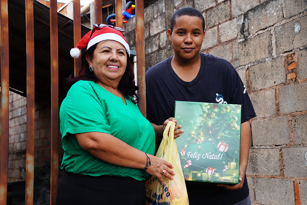 A finalidade do NATAL SOLIDÁRIO foi levar até as famílias com vulnerabilidade social “itens alimentares que nos remetem a comemoração natalina”, alimentos para compor uma ceia de Natal em igual oportunidade de todos e brinquedos para as crianças que moram nestas residências. Aperte nas fotos para ampliar:
